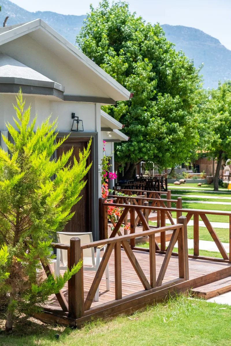 Located at one of the most beautiful spots in Ölüdeniz, right on the beachfront, Beach 222 is a warm and comfortable family-run hotel. With its private white sandy beach, standalone bungalows, and various room types, it offers a pleasant stay for couples and families alike. Start your day with breakfast overlooking the sea every morning.