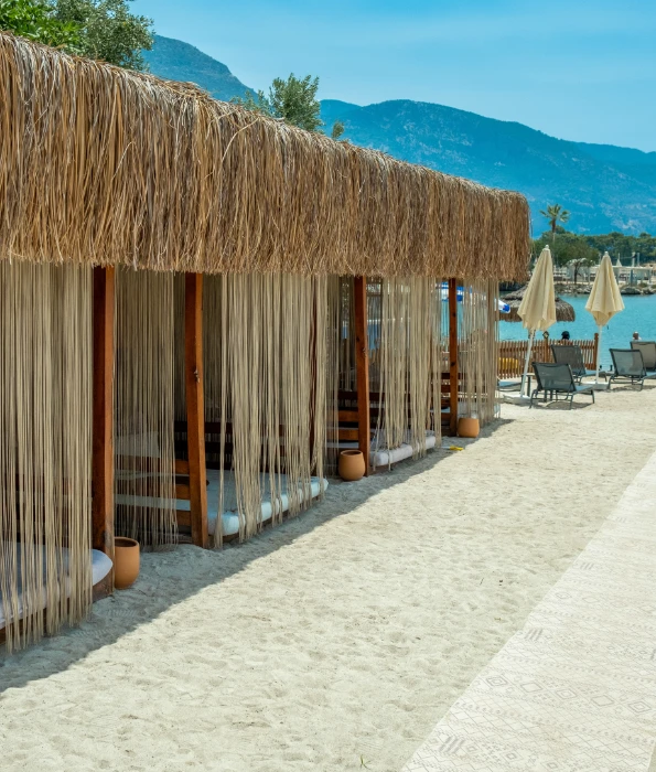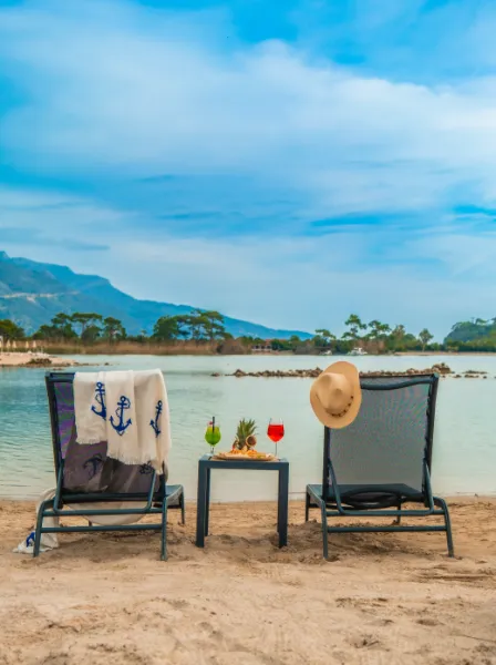 Beach 222 | Ölüdeniz offers a peaceful getaway with its private beach and comfortable accommodation options. White sands, turquoise waters, and a calm luxury atmosphere promise an unforgettable holiday experience.