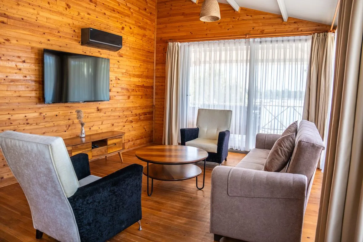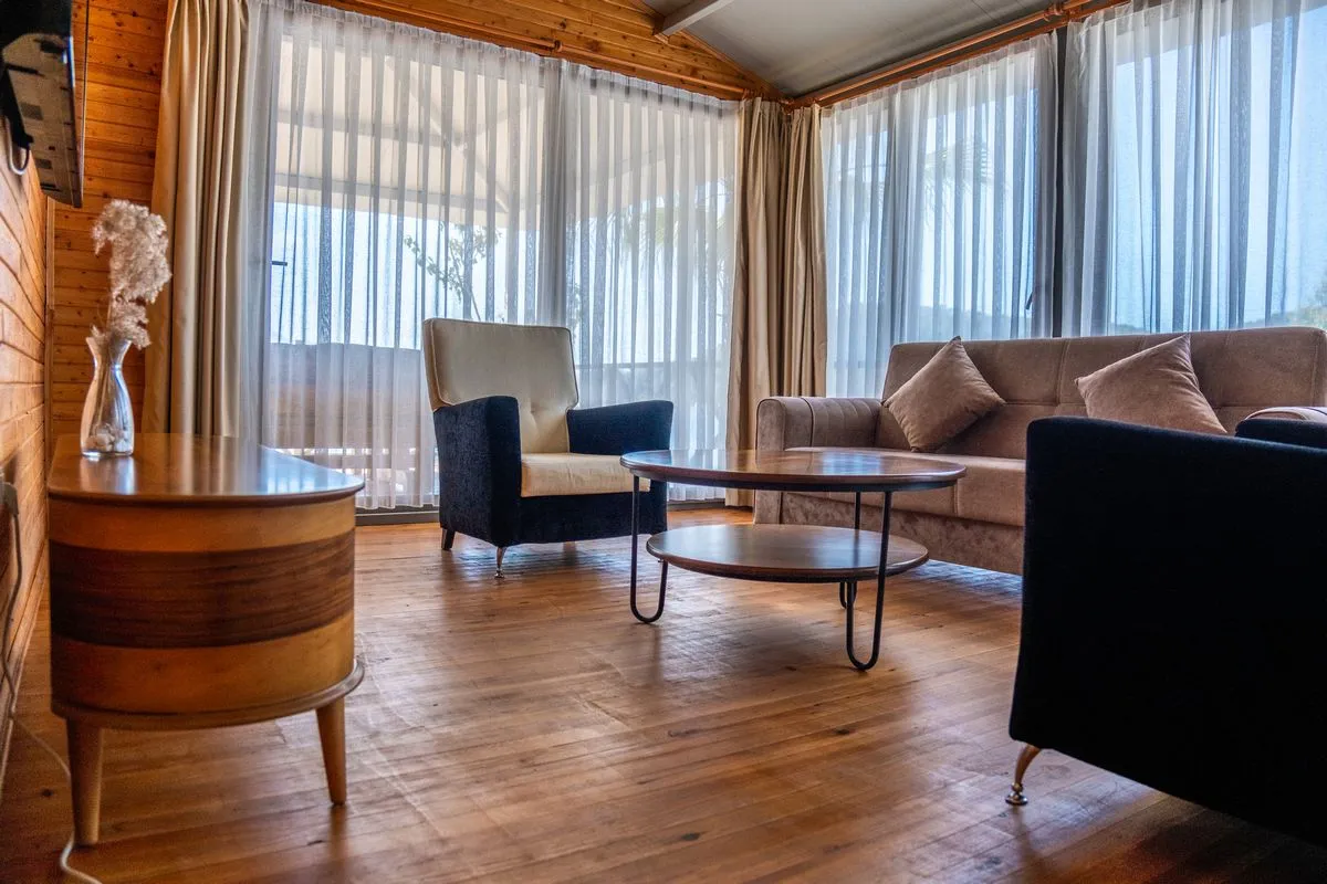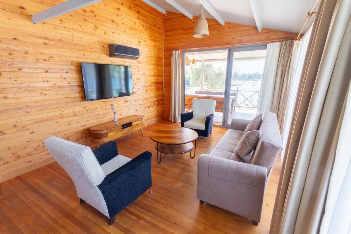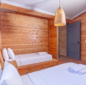 Семейный номер Делюкс 2+1 предлагает просторную жилую площадь 52 квадратных метра, полный вид на море и планировку с двумя отдельными спальнями, что делает его идеальным выбором для больших семей или длительного проживания. В одной спальне установлена двуспальная кровать, в другой — две односпальные кровати. Также в номере есть комфортная зона отдыха и просторная частная терраса. Номер полностью оснащён зоной для завтрака, кофемашиной, чайником, беспроводным интернетом, сейфом, утюгом и гладильной доской, феном и душем, обеспечивая полноценное и комфортное пребывание.